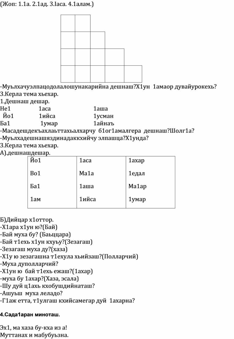 2.Хьехархочун хаттаршнажопдалар к х иор.Къамелаюкъарапредложенешйовзахаар. Ойлаяр , тидам бар кхиор.Дозуш долу къамелкхиор..Тобанашкахьболх бар кхиор. Ойлаяр ,тидам бар кхиор.