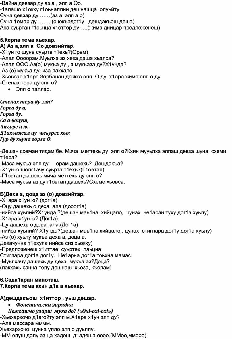 1. Предметни:Аз а , элп а Оо довзийтар, (о) мукъаза аз хилар хаийтар, элп о юкъадог1у дешдакъош х1иттор, уьш деша 1амор, деха , доца мукъа аьзнаш довзийтар