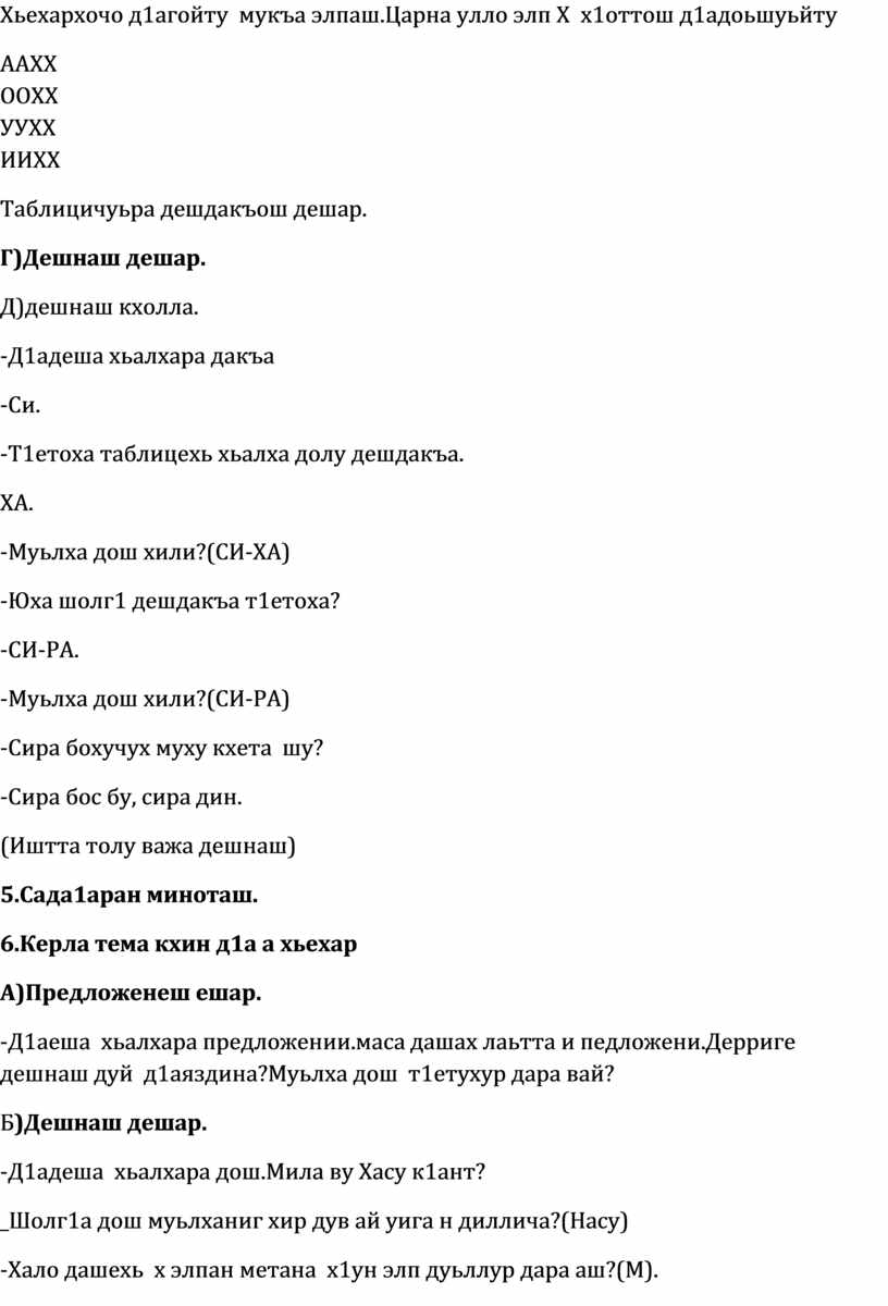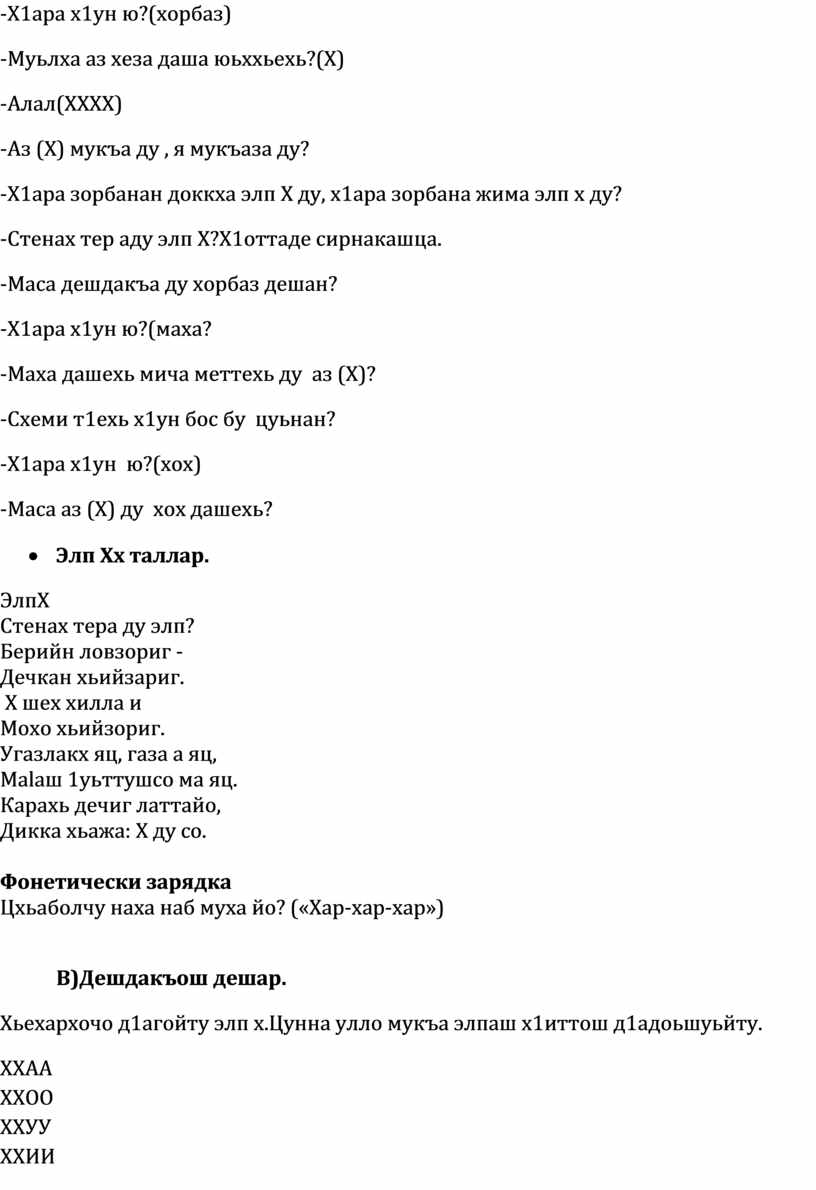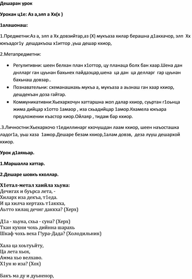 1.Предметни:Аз а, элп а Хх довзийтар,аз (Х) мукъаза хилар берашна д1акхачор, элп Хх юкъадог1у дешдакъош х1иттор ,уьш дешар кхиор,