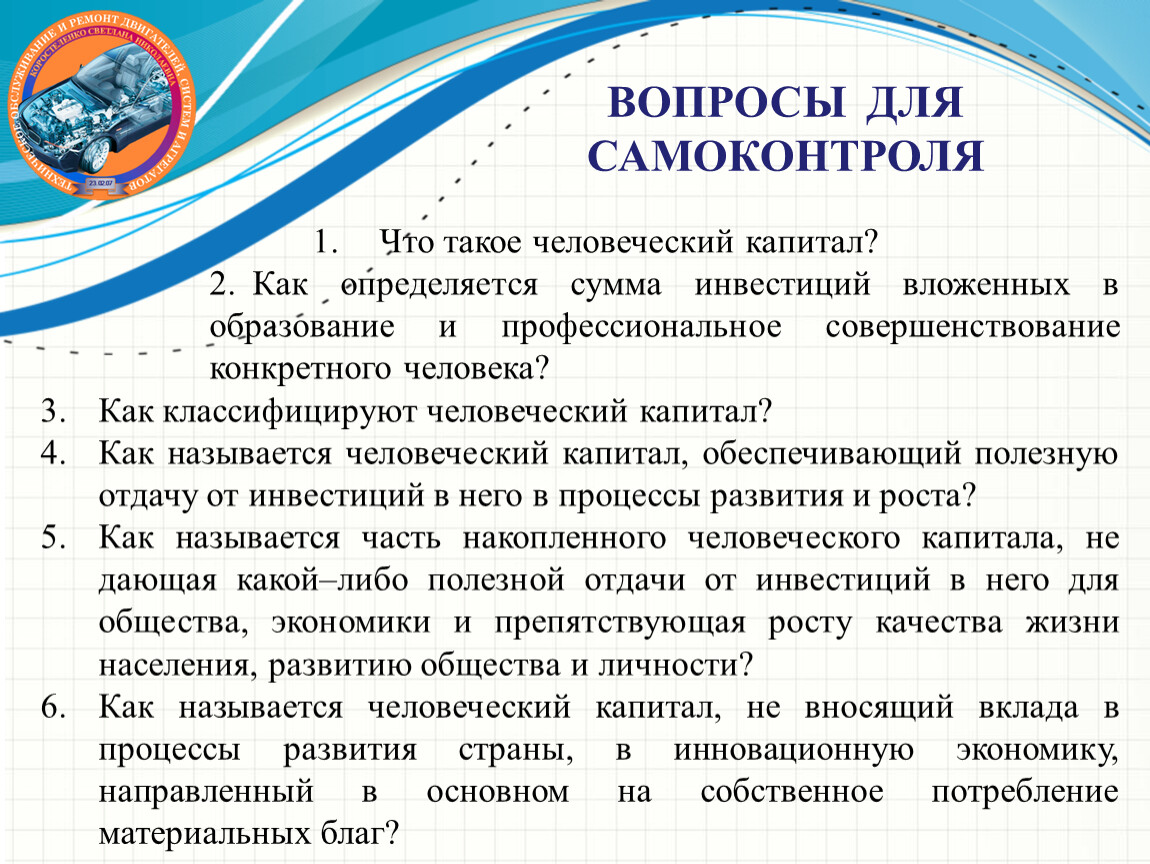 Как называется человеческий капитал, обеспечивающий полезную отдачу от инвестиций в него в процессы развития и роста?
