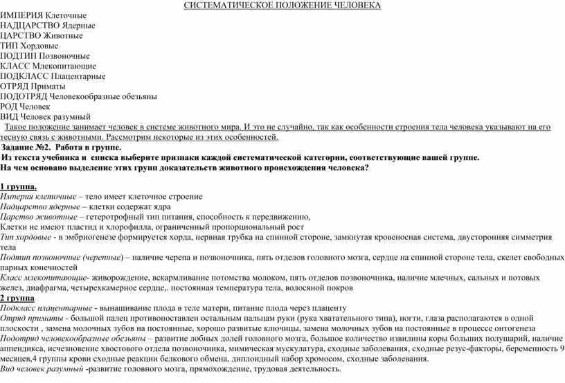 цель урока: Рассмотрим систематическое положение человека и определим его принадлежность к известным таксонам. Докажем путем сравнения. |