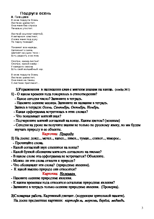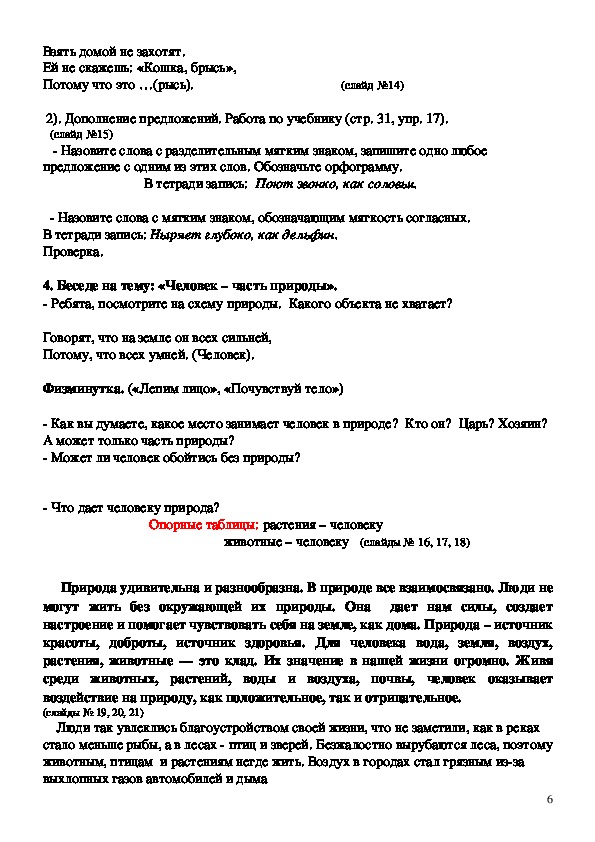 мягкость согласного; дать представления о том, что человек часть природы,