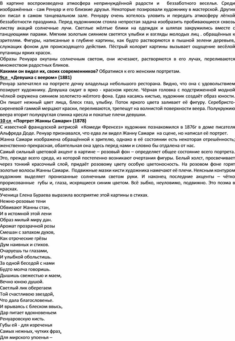 «Настоящий художник выражает то, что думает, не боясь столкнуться с обычаями века» (Огюст Ренуар)
