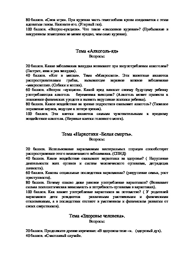 100 баллов. «Вопросаукцион». Что такое «пассивное курение»? (Пребывание в