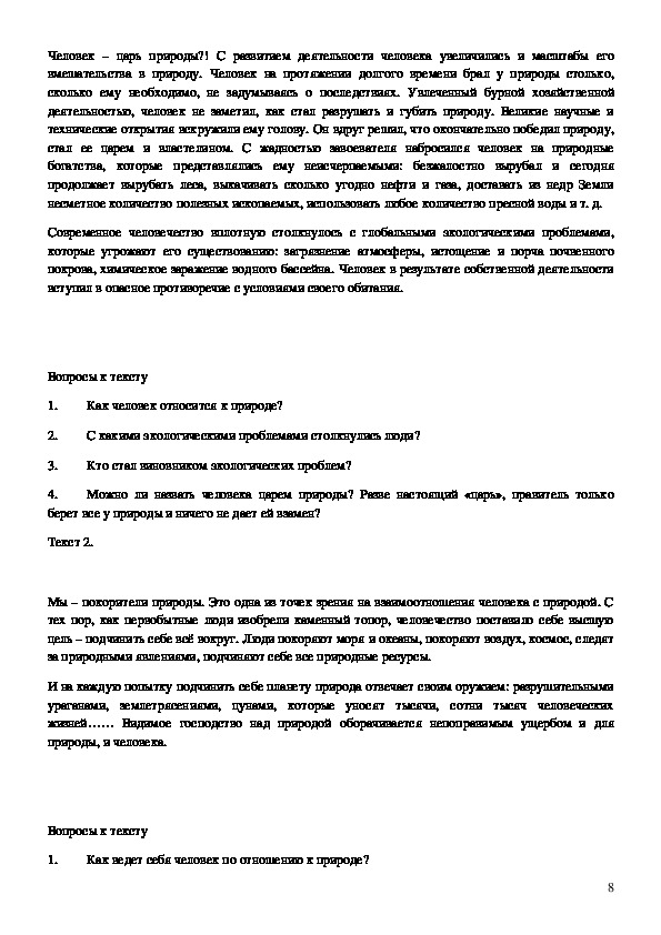 б) «Мы – покорители природы!» (текст 2 2 группа),
