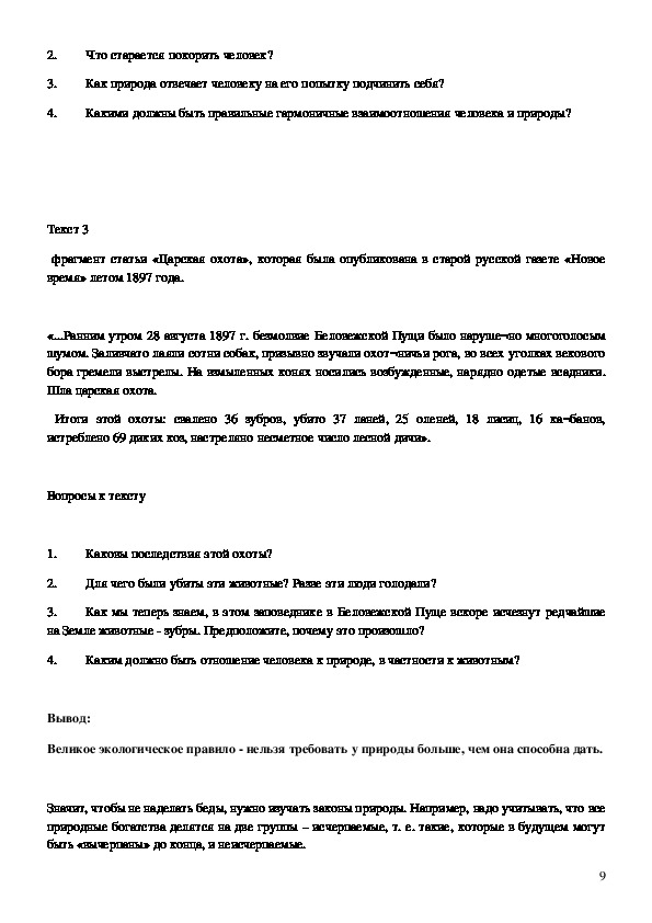 Великое экологическое правило нельзя требовать у природы больше, чем она способна дать.