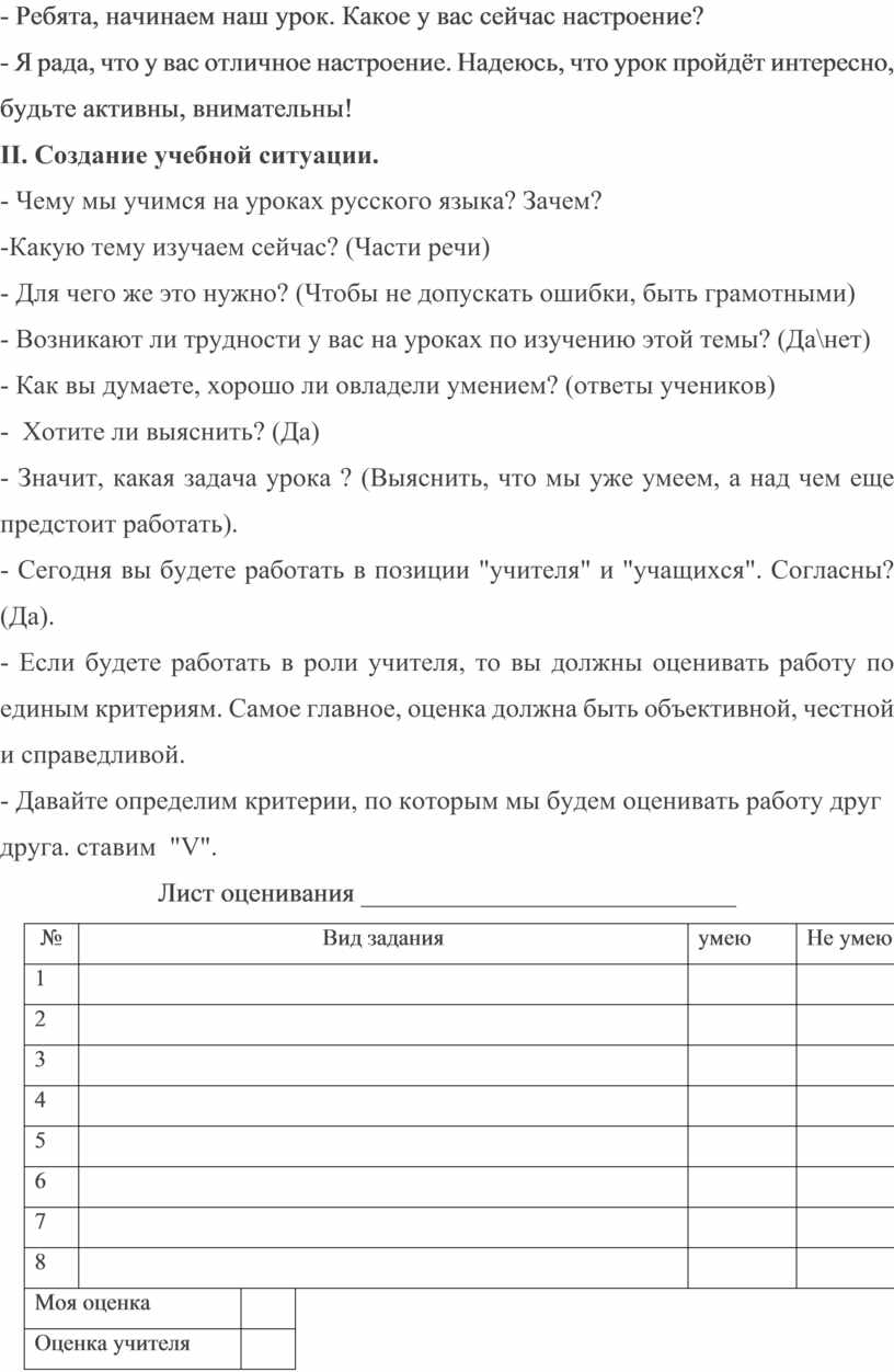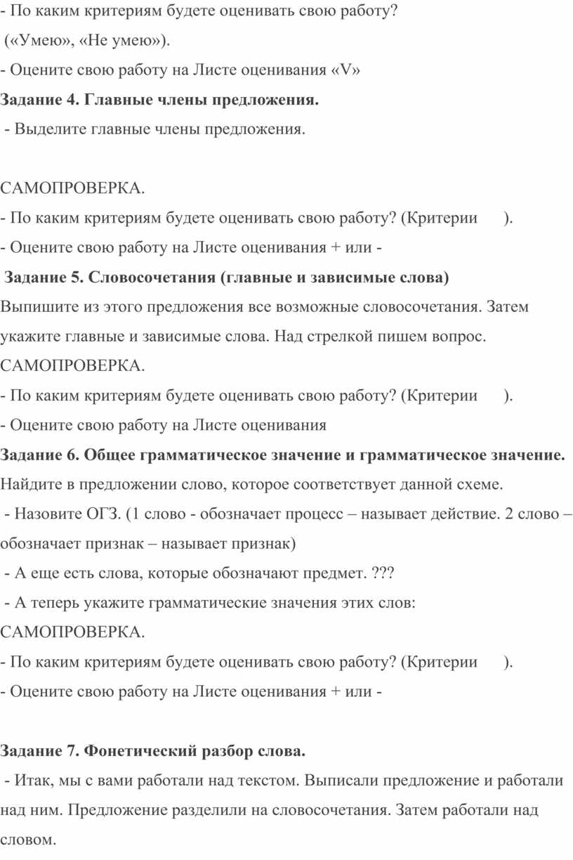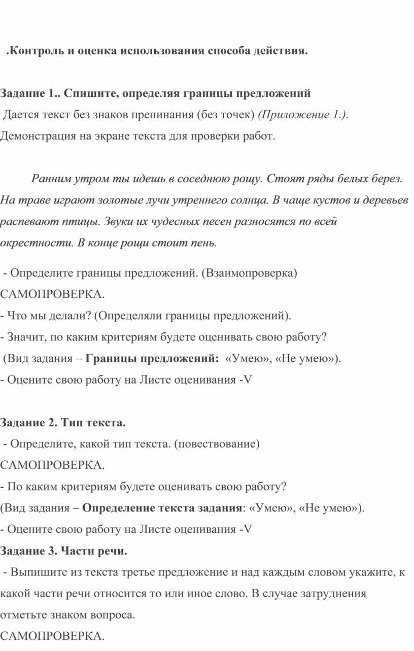 (Вид задания – Определение текста задания: «Умею», «Не умею»).