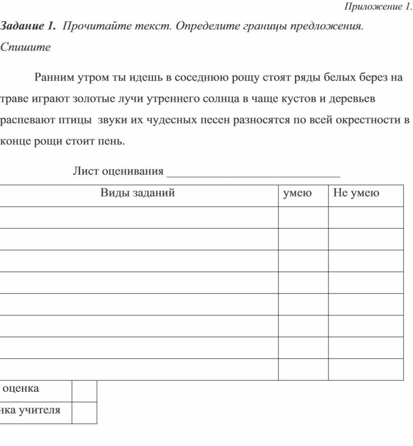 Дается текст без знаков препинания (без точек) (Приложение 1.).