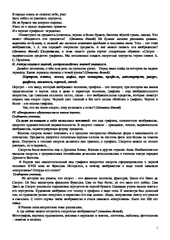 теме «Силуэт», где укажем, на что обратить внимание при изучении темы, чтобы не возникли