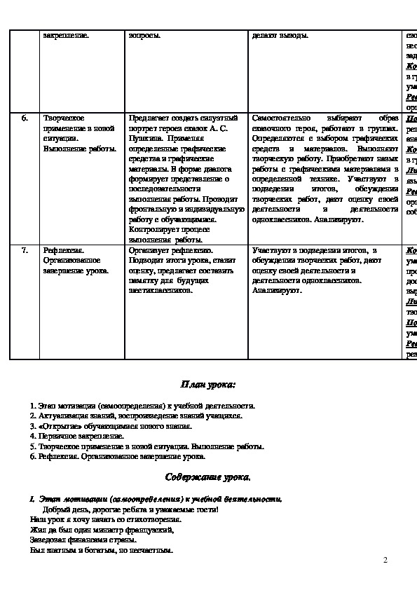 формирование ответственного отношения к учению, установление учащимися связи между целью учебной деятельности и её мотивом (мотив - силуэтное изображение сказочных героев, задача – создание галереи портретов героев сказок А. С. Пушкина).