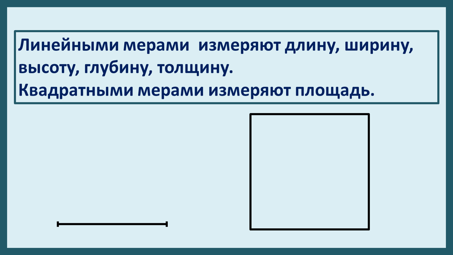 Линейными мерами измеряют длину, ширину, высоту, глубину, толщину.