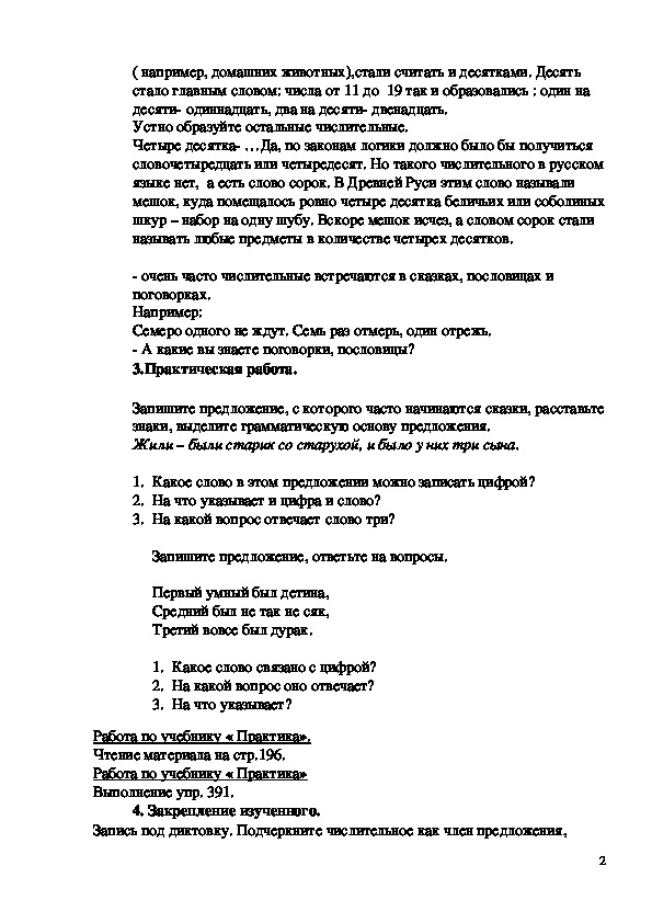 роль. 3. Развивать умение находить числительное в тексте, употреблять в