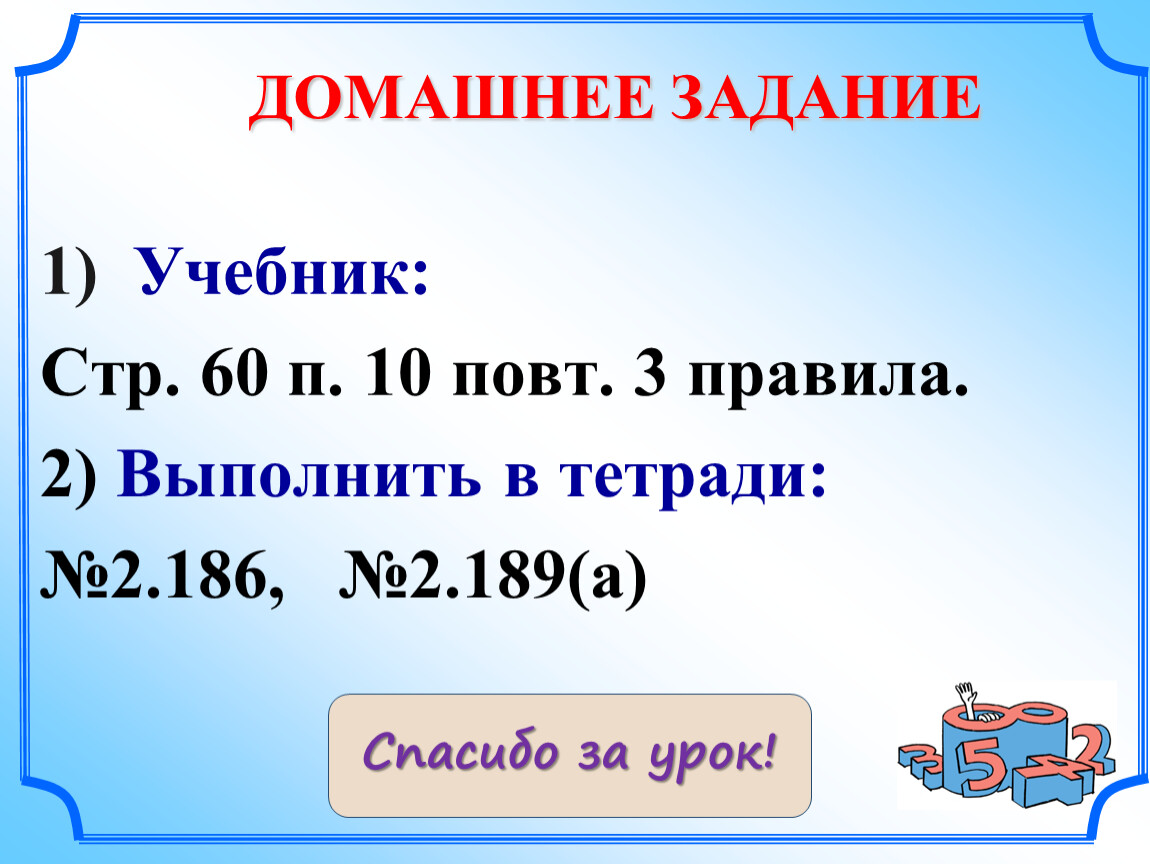 Стр. 60 п. 10 учить 3 правила, ответить на вопросы;