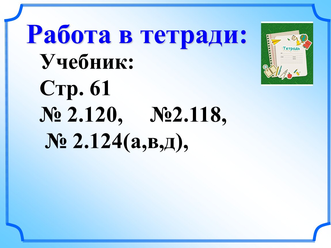 2) Выполнить в тетради: №2.183(б,в), №2.184(б,в), №2.185