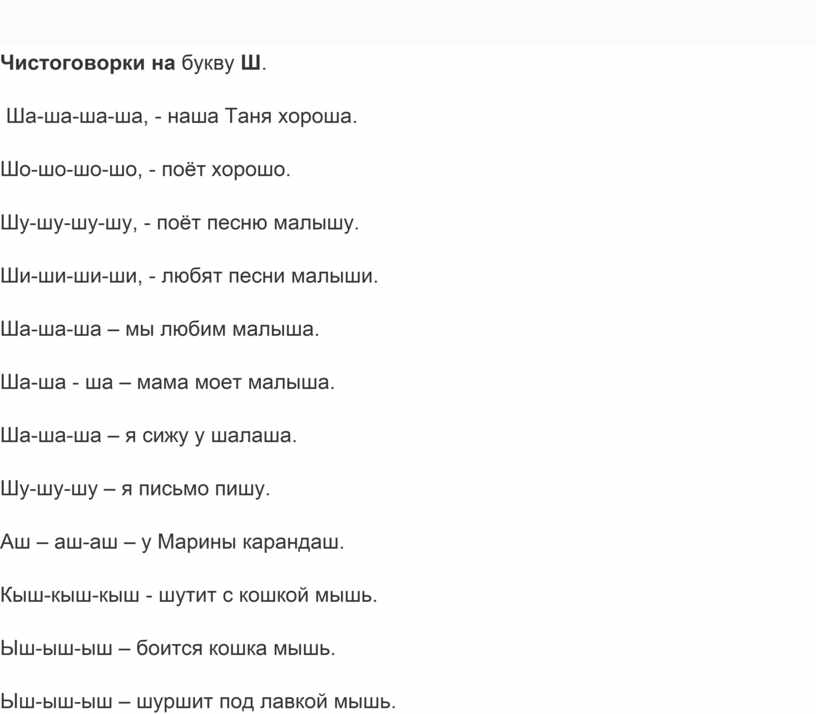 Чистоговорки на букву Ш.