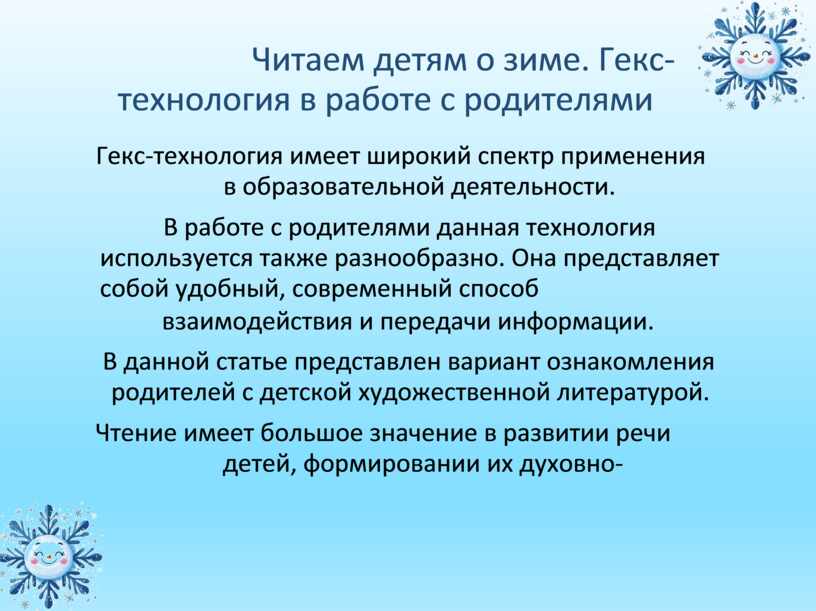 Читаем детям о зиме. Гекс-технология в работе с родителями