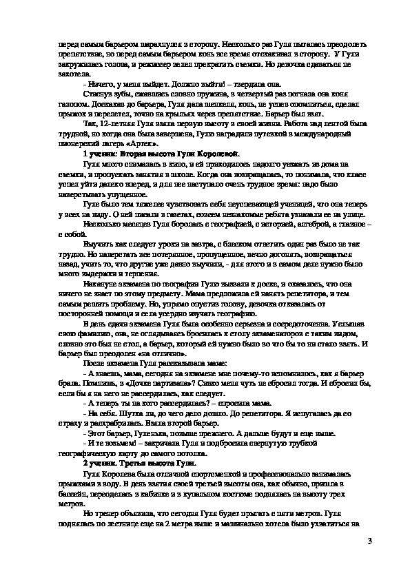 "Гуля воспитывала в себе твёрдую волю и характер. Ей нелегко это досталось,