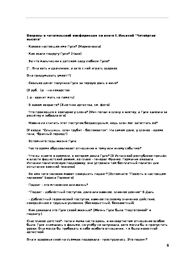 5Вопросы к читательской конференции по книге Е.Ильиной "Четвёртая