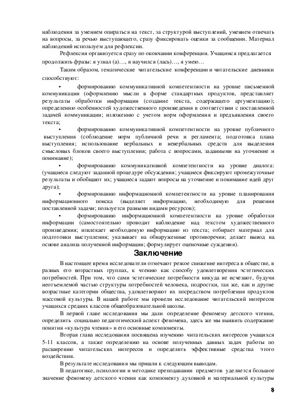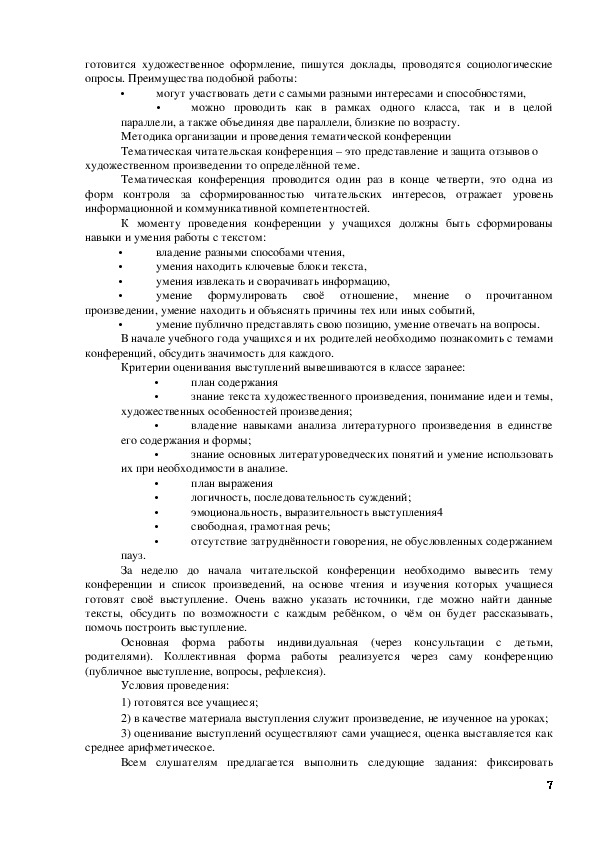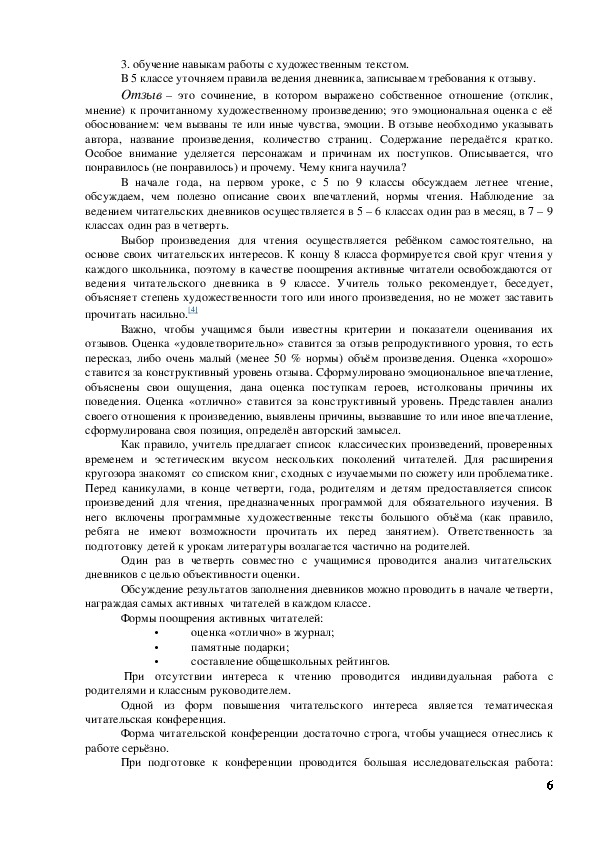 дневника и проведение читательских конференций, которые способствуют ознакомлению