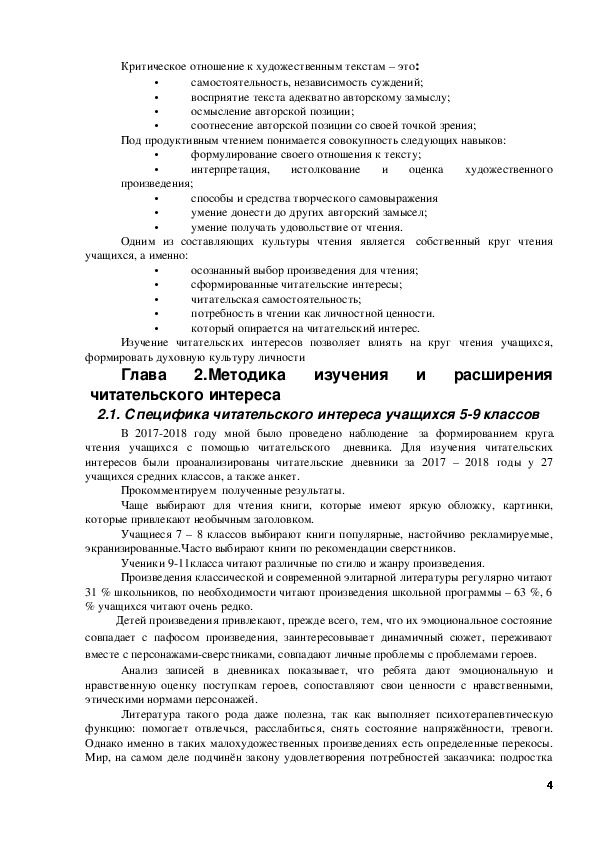 Вторая глава исследования посвящена изучению читательских интересов учащихся