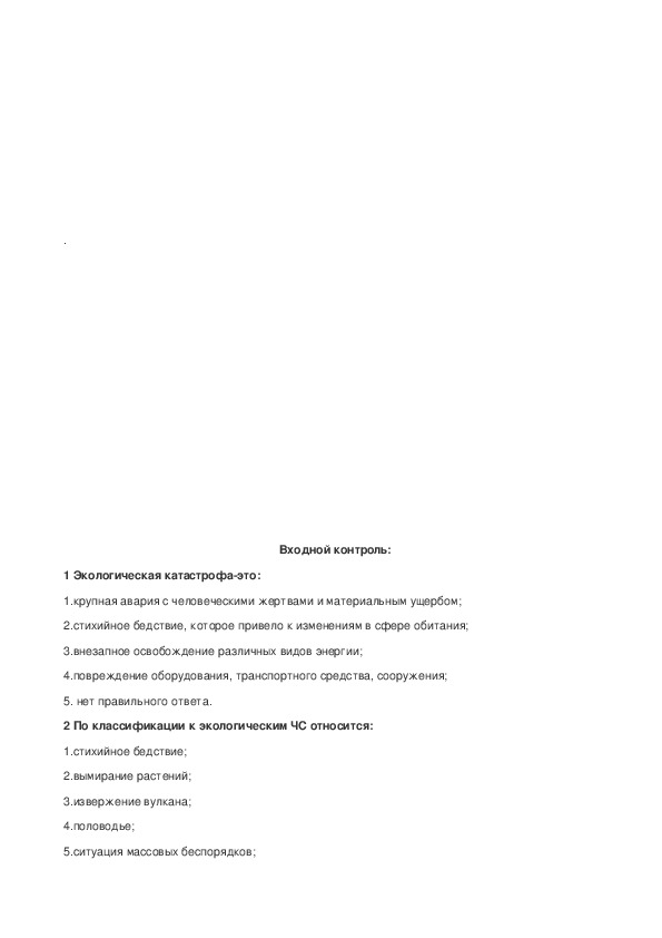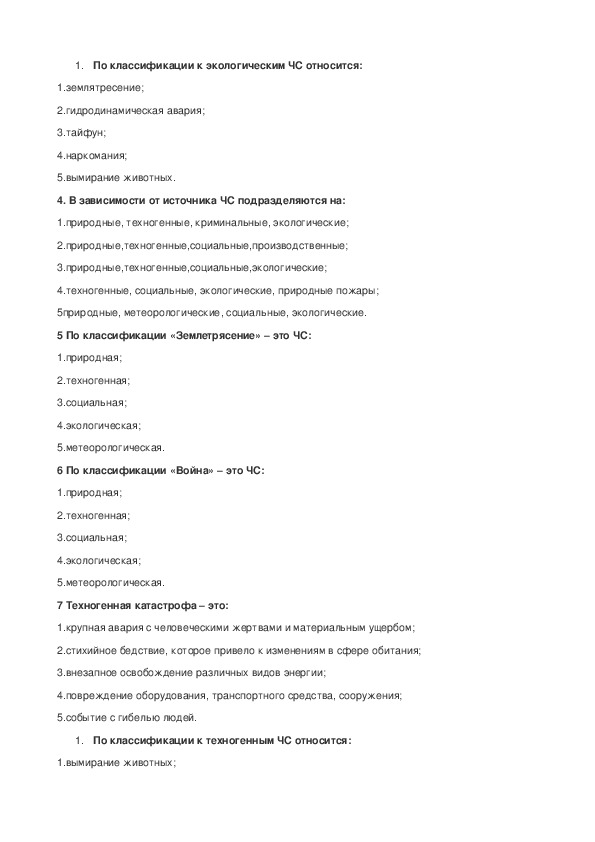 5.ситуация массовых беспорядков;1. По классификации к экологическим ЧС относится: