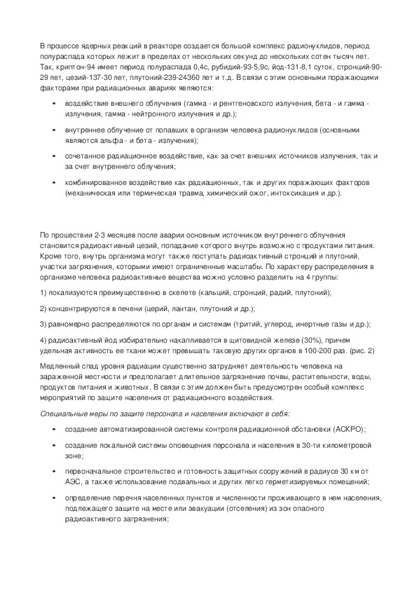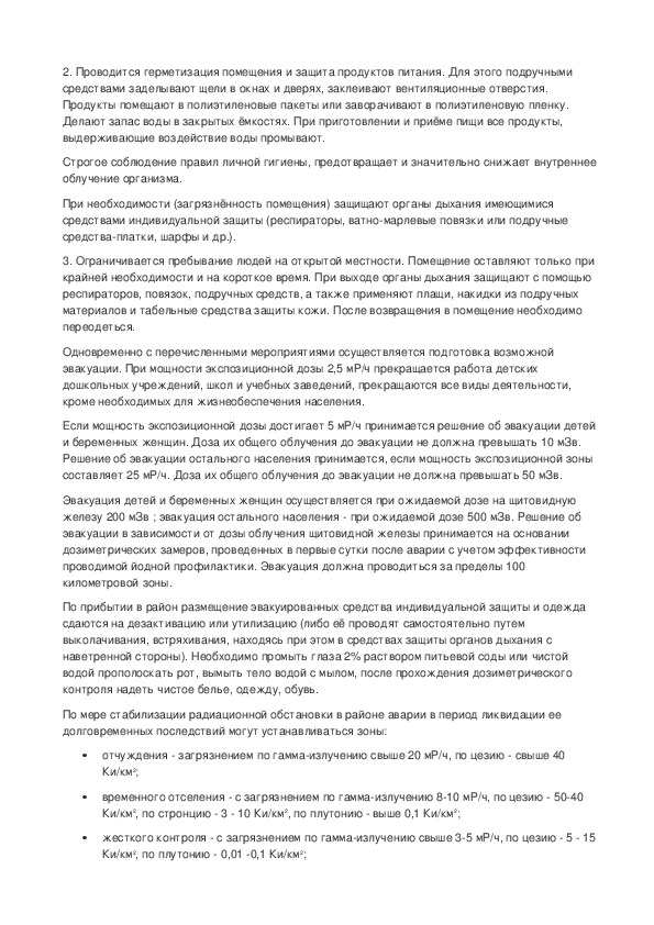 и беременных женщин. Доза их общего облучения до эвакуации не должна превышать 10 мЗв.