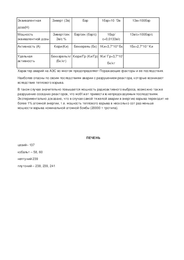 железу 200 мЗв ; эвакуация остального населения при ожидаемой дозе 500 мЗв. Решение об