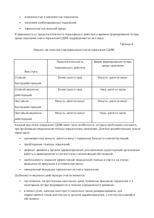пораженных в очаге ЧС.