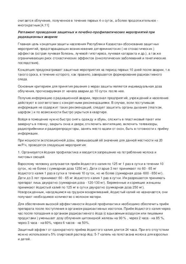препарата после поступления в организм радиоактивных изотопов. Приём йодистого калия через
