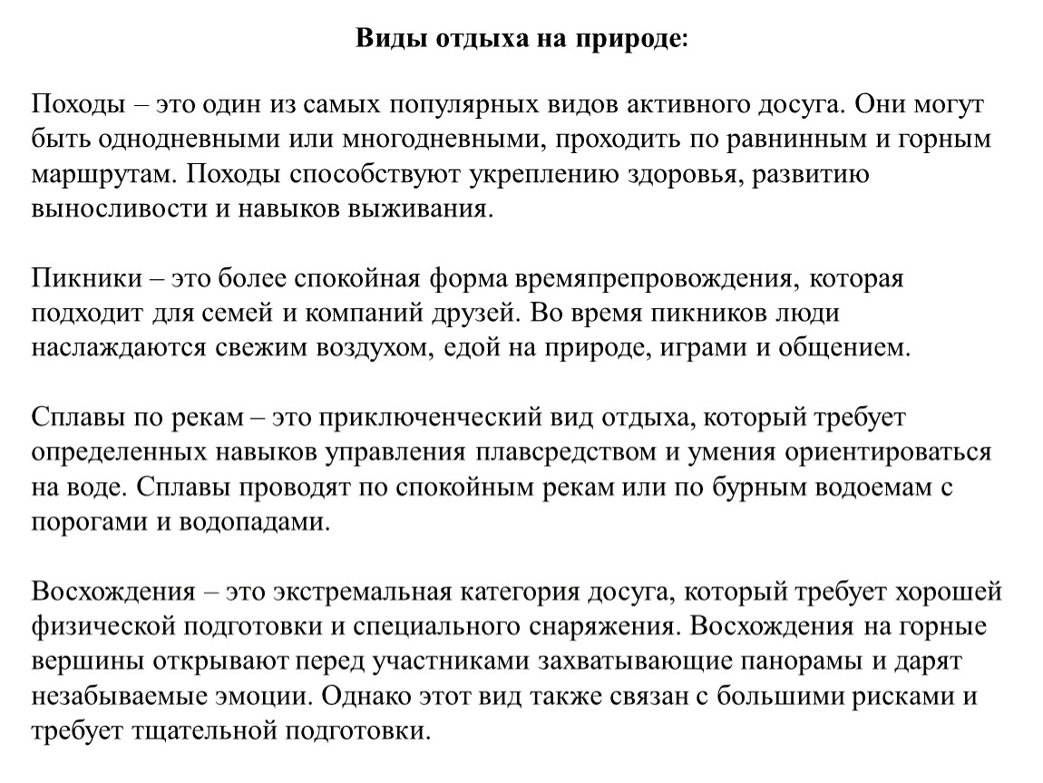 Виды отдыха на природе: