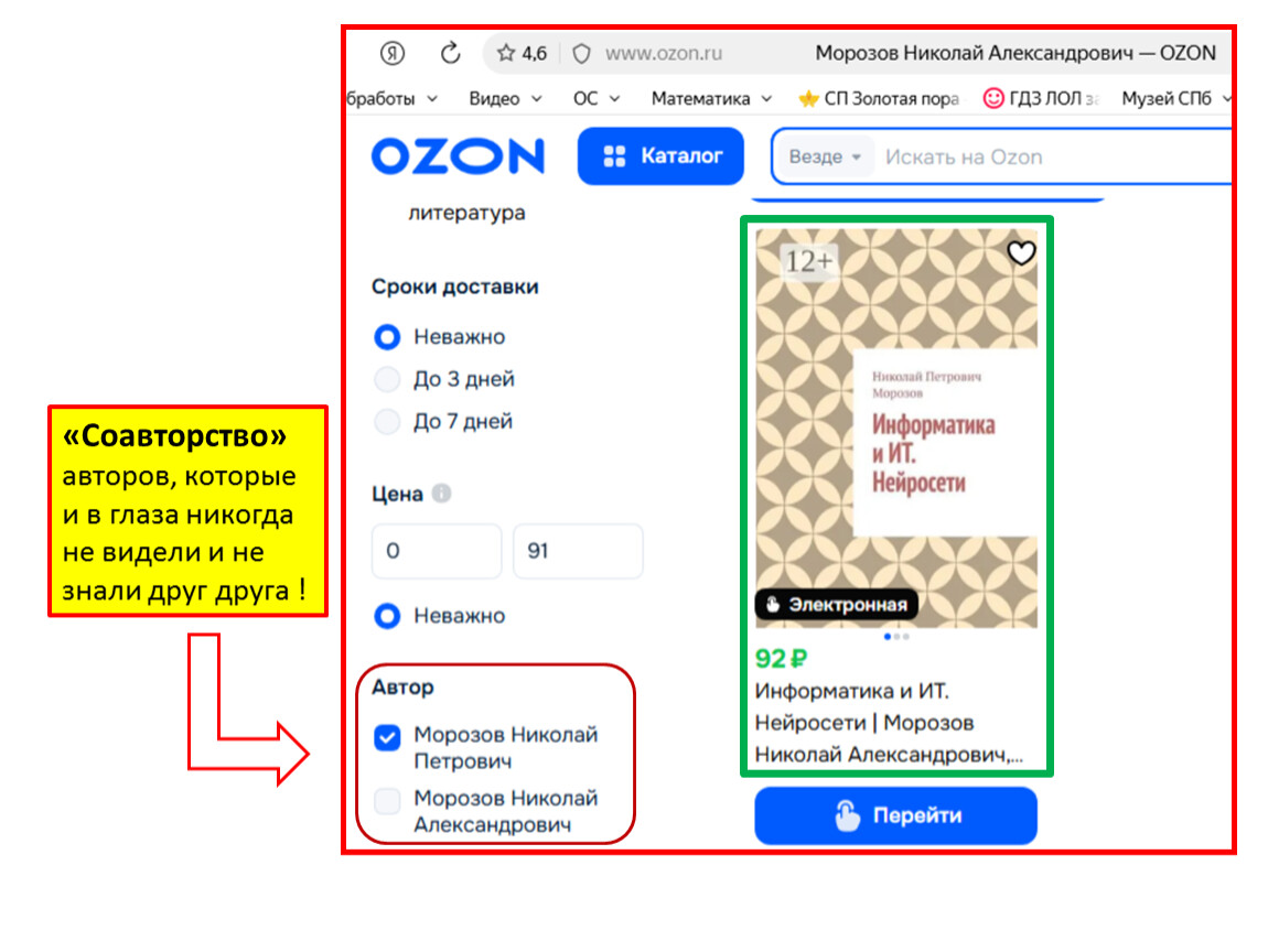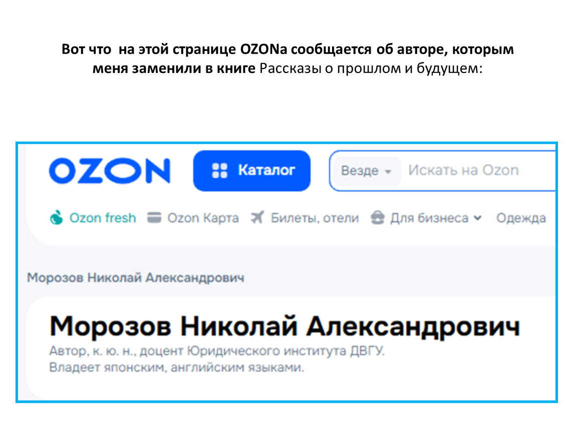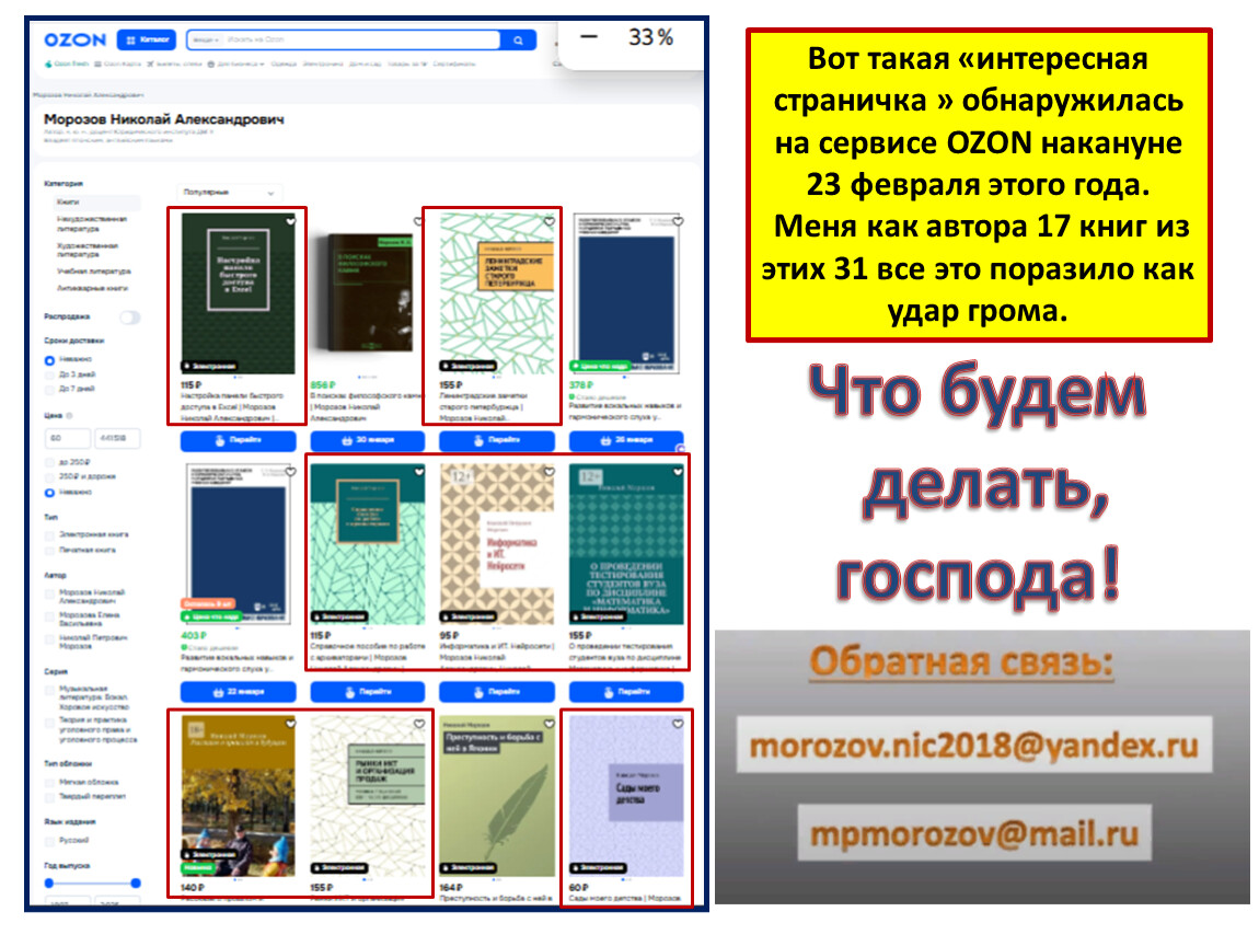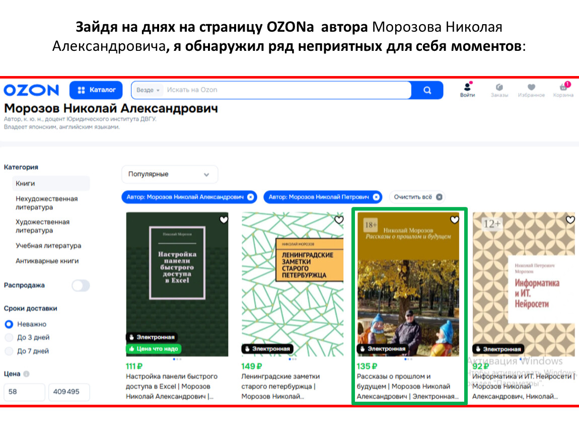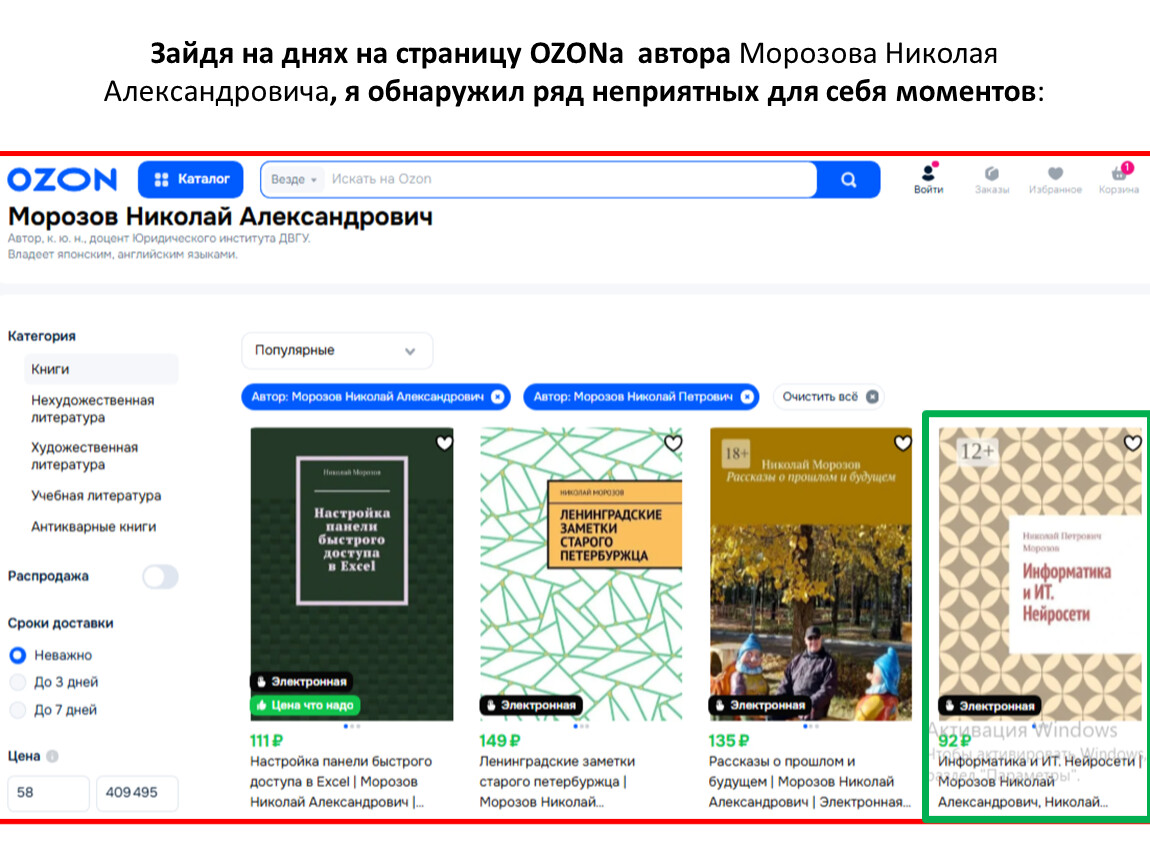 Зайдя на днях на страницу OZONа автора Морозова Николая Александровича, я обнаружил ряд неприятных для себя моментов: