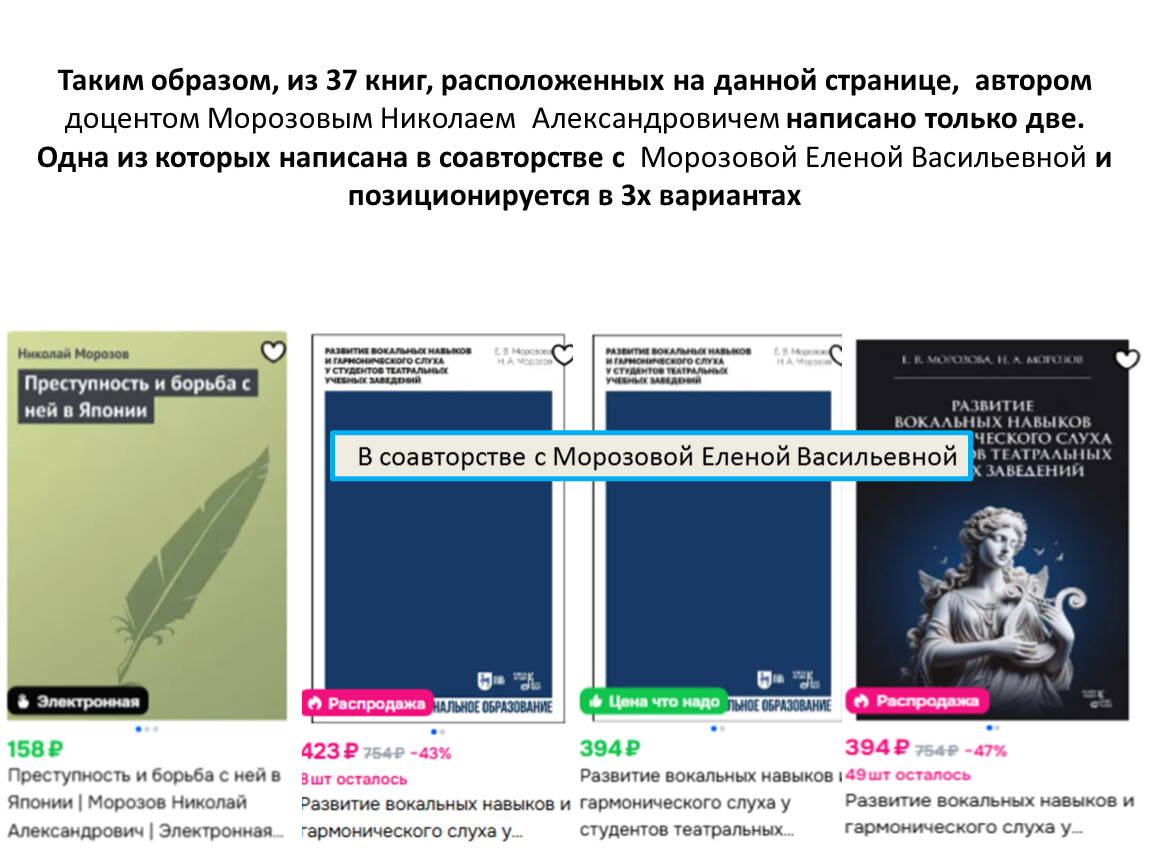 Таким образом, из 37 книг, расположенных на данной странице, автором доцентом Морозовым Николаем Александровичем написано только две.