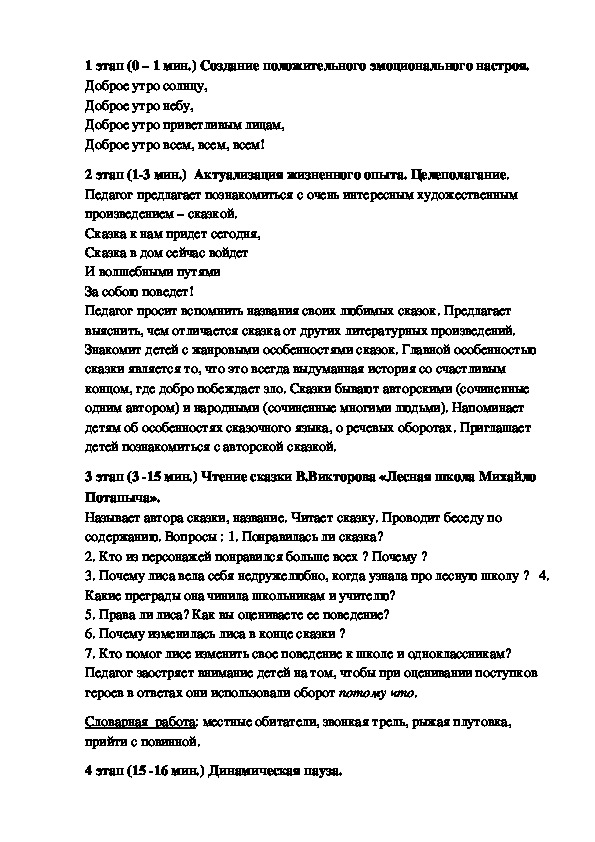 3 этап (3 15 мин.) Чтение сказки В.Викторова «Лесная школа Михайло