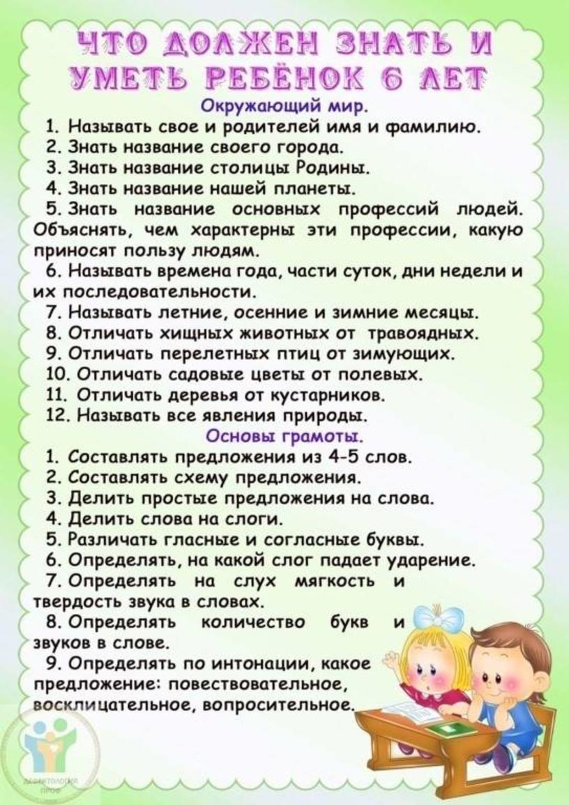 что должен знать и уметь ребенок в 6 лет