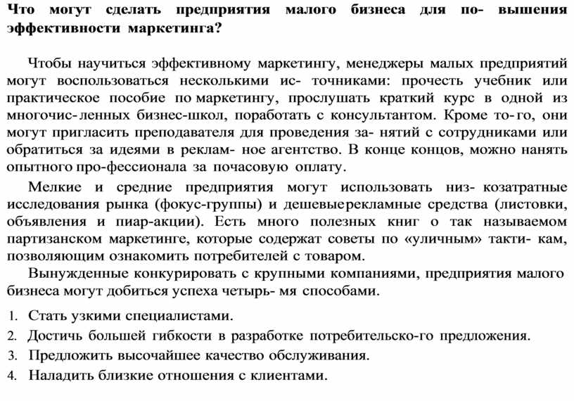 Что могут сделать предприятия малого бизнеса для по вышения эффективности маркетинга?