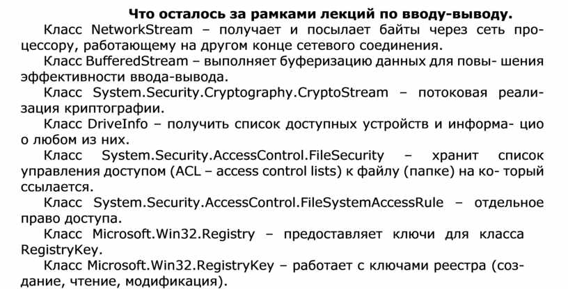 Класс BufferedStream – выполняет буферизацию данных для повы- шения эффективности ввода-вывода.