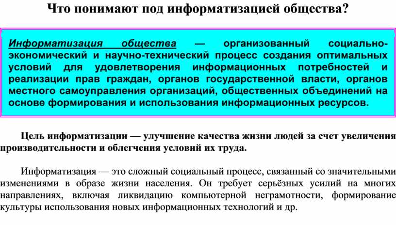 Что понимают под информатизацией общества?