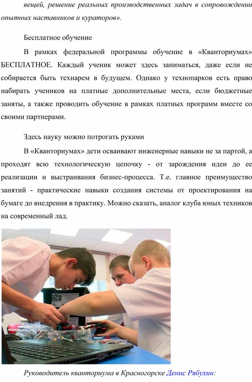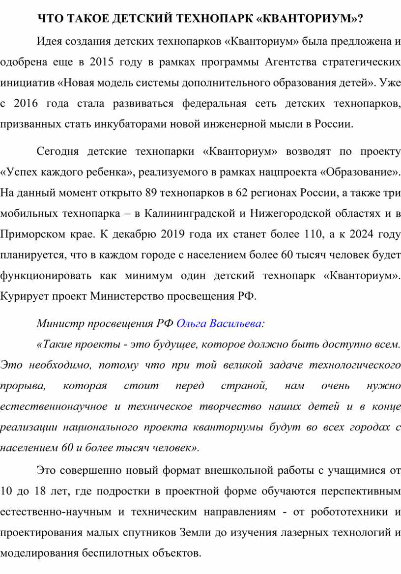 ЧТО ТАКОЕ ДЕТСКИЙ ТЕХНОПАРК «КВАНТОРИУМ»?