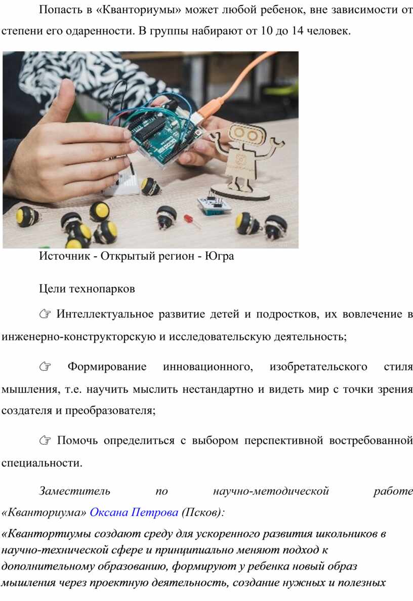 «Квантортиумы создают среду для ускоренного развития школьников в научно-технической сфере и принципиально меняют подход к дополнительному образованию, формируют у ребенка новый образ мышления через проектную деятельность, создание нужных и полезных вещей, решение реальных производственных задач в сопровождении опытных наставников и кураторов».