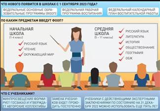 ФОП в школе вводится с 1 сентября 2023 года. Это Федеральная общеобразовательная программа, в которой содержится новая инструкция обучения и воспитания учеников начальных, средних и старших классов. Для педагогов в ней расписаны учебный план, график, план воспитательной работы.