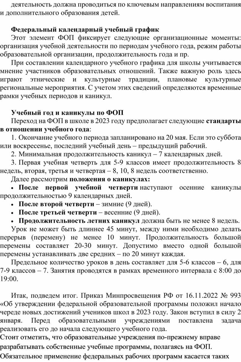 Переход на ФОП в школе в 2023 году предполагает следующие стандарты в отношении учебного года: