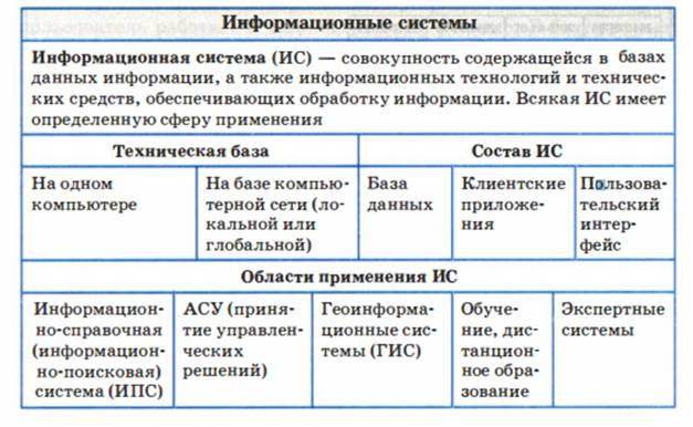 Основой информационной системы является база данных. О базах данных на уровне первоначального представления рассказывалось в курсе информатики 8 класса.