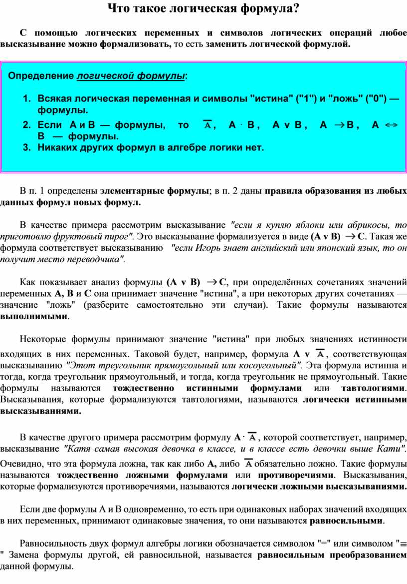 "ложь" (разберите самостоятельно эти случаи). Такие формулы