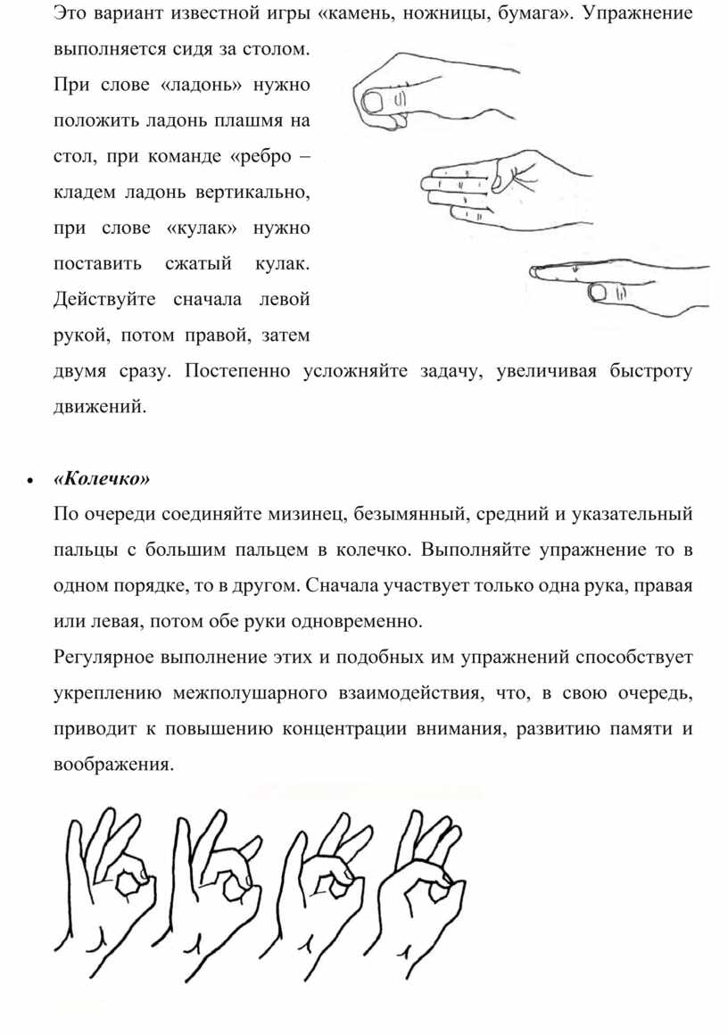 игры «камень, ножницы, бумага». Упражнение выполняется сидя за столом. При