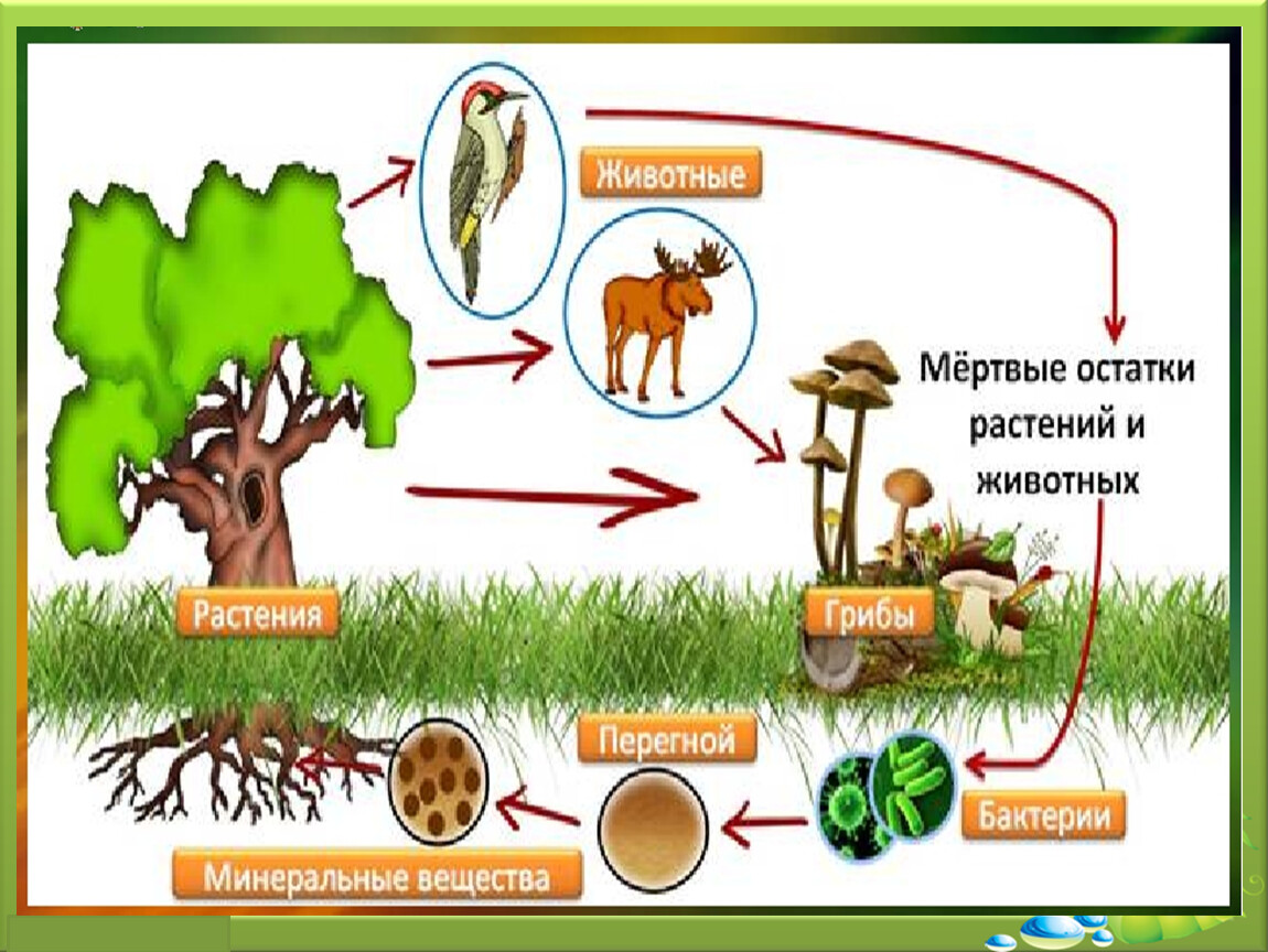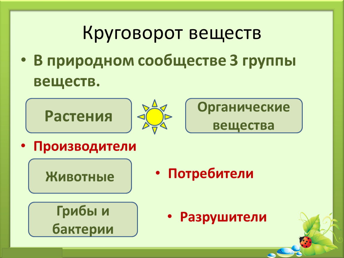 В природном сообществе 3 группы веществ.