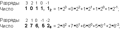 целых и дробных разрядов, соответственно.
