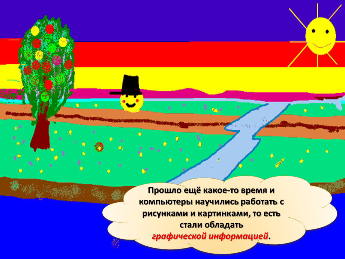 Прошло ещё какое-то время и компьютеры научились работать с рисунками и картинками, то есть стали обладать графической информацией.
