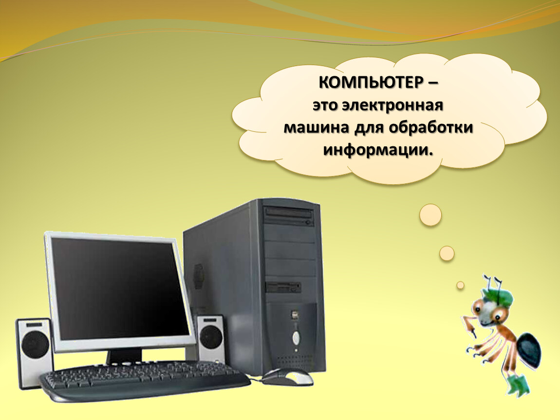 Первые компьютеры называли ЭВМ – электронно-вычислительные машины. Они занимались только арифметическими вычислениями. На сегодняшний день компьютер может не только считать. Он принимает, обрабатывает, хранит и выдаёт человеку огромное количество информации.