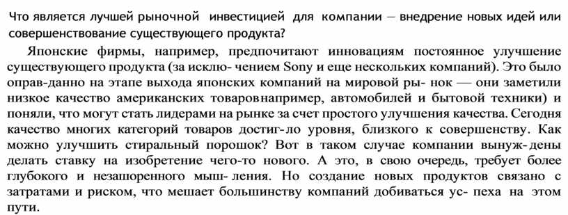 Что является лучшей рыночной инвестицией для компании — внедрение новых идей или совершенствование существующего продукта?