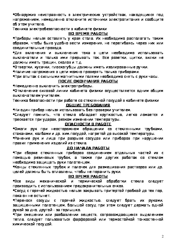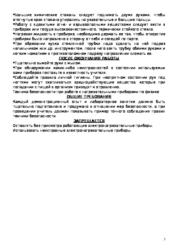 Техника безопасности при работе со стеклянной посудой в кабинете физики